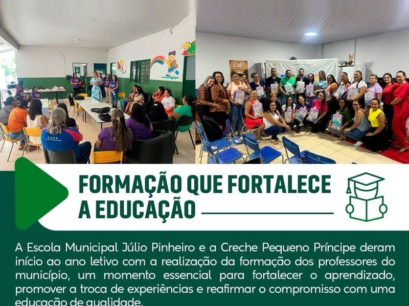 Com o objetivo de iniciar as atividades escolares com alto padrão de planejamento, a Escola Municipal Júlio Pinheiro e a Creche Pequeno Príncipe promoveram a formação inicial dos professores da rede municipal. O evento marcou o início das atividades pedagógicas de 2026, consolidando-se como um espaço de diálogo, troca de experiências e atualização metodológica.
